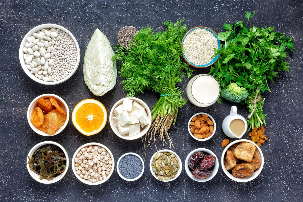 Абсолютным рекордсменом по количеству кальция среди растительных продуктов является кунжут: в 100 г содержится практически суточная норма кальция — 975 мг.