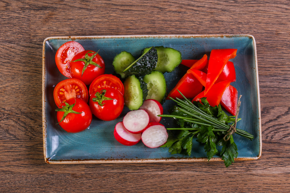 Салаты и обработанные овощи (кроме крахмалистых овощей) должны быть в каждом приеме пищи и составлять примерно половину тарелки. Клетчатка, которая содержится в овощах, помогает работе кишечника, кроме того, овощи низкокалорийны, так что их можно смело съедать в большом количестве. Белки (птица, рыба, морепродукты, тофу) — 1/4 объема, а оставшееся место должны занимать питательные углеводные гарниры (приготовленные крупы и корнеплоды). Такой подход к питанию помогает получать необходимые организму вещества в нужных пропорциях и избавиться от лишнего веса.