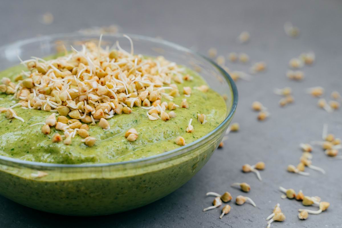 Для любителей каш. Попробуйте готовить овсяные хлопья для каши самостоятельно. Предварительно прорастите зерна овса в специальном проращивателе, а затем пропустите их через зернодавилку, чтобы получить хлопья. Сварите полученные хлопья на растительном молоке (лучше всего — приготовленном самостоятельно в блендере), добавьте кедровые орешки и любую зелень, какая найдется в холодильнике. Это отличный несладкий завтрак и даже обед. Главное — есть такую кашу не более 1-2 раз в неделю.