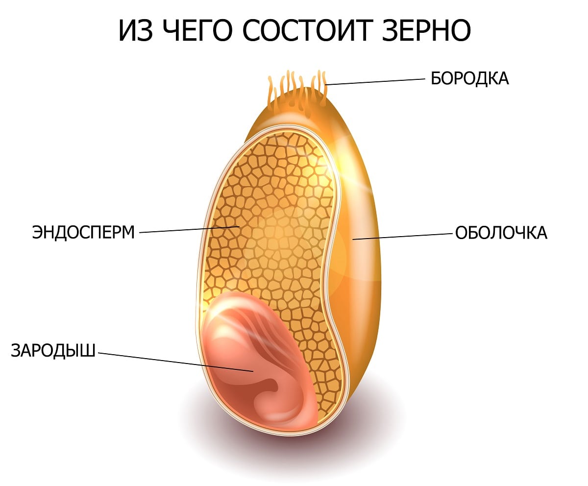 Все самое полезное содержится в оболочке и зародыше зерна, от которых его и очищают в погоне за белым цветом муки и длительным хранением.