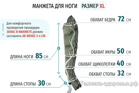 Аппаратом пользоваться легко и удобно. Интуитивное управление полностью на русском языке. Аппарат очень лёгкий и имеет удобную ручку для переноски. Перед покупкой, измерьте ваши параметры: длину и обхват ваших ног, руки и пояса. Если стандартный размер манжет ног для вас мал, обратите внимание на специальные расширители, применение которых увеличивает размер манжет ног на 6/10/12/18/20/24 и даже 36 см! Вы можете использовать от 1 (одного) до 3 (трёх) расширителей на каждой манжете для ног, увеличивая максимальный обхват манжет ног в районе бедра до 98 см.