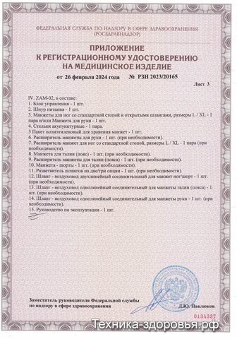 В России в реестр техники медицинского назначения могут быть включены только сертифицированные аппараты для проведения процедуры массажа. Продукция южнокорейского бренда WelbuTech соответствует этим требованиям. В 2023 году модели Zam-02, Zam 200S, Zam Luxury и Zam Sport стали первыми корейскими массажерами, получившими разрешение на продажу от Росздравнадзора. Этот сертификат подтверждает их эффективность, надежность и безопасность.