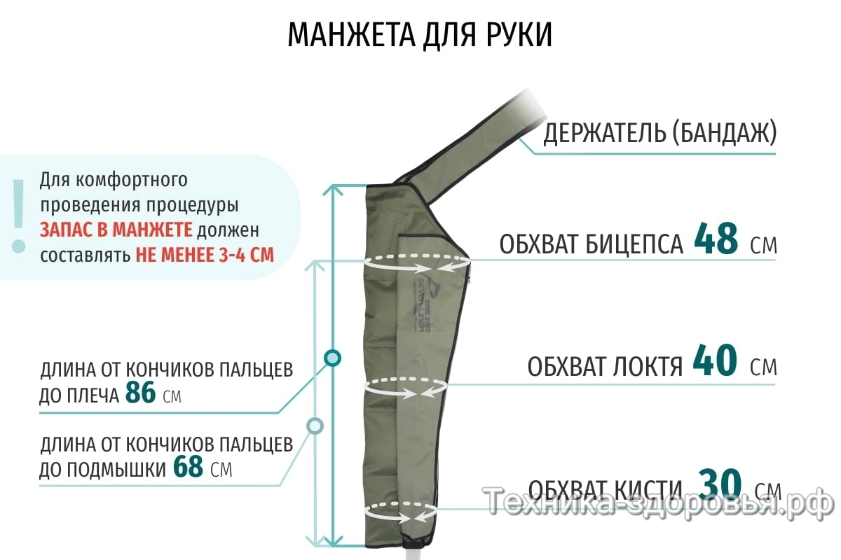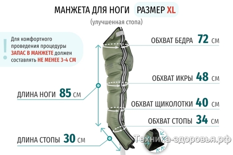 Для массажа, лимфодренажа и прессотерапии ног, рук и талии для домашнего использования, а также для применения в косметических кабинетах и салонах красоты