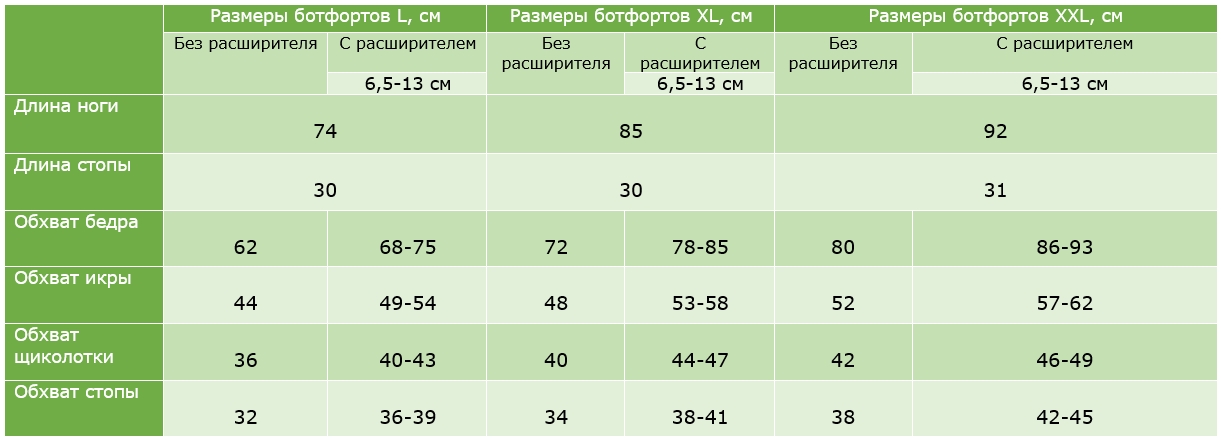 Размеры манжет-ботфортов для массажёров Zam