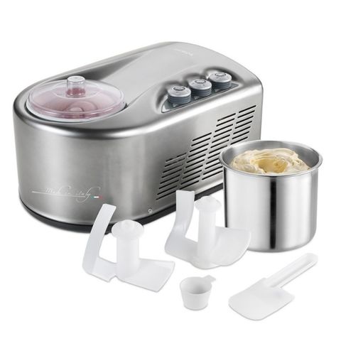 Приготовление десертов возможно как во встроенной, так и в съемной емкостях объемом 1,7 л. Встроенная холодильная установка позволяет не тратить время на заморозку контейнера и готовить большее количество порций мороженого.