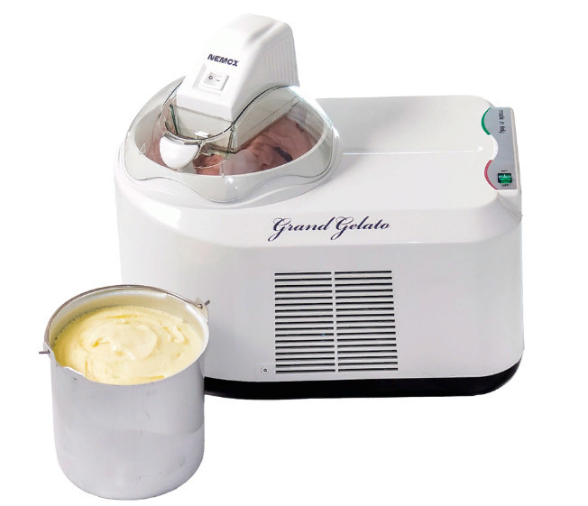 Nemox Gelato Grand - это наиболее высокотехнологичная итальянская мороженица. Данная модель полностью автоматизирована. Имеет в комплектации основную и съемную чаши. Аппарат может одновременно замораживать и перемешивать смесь.