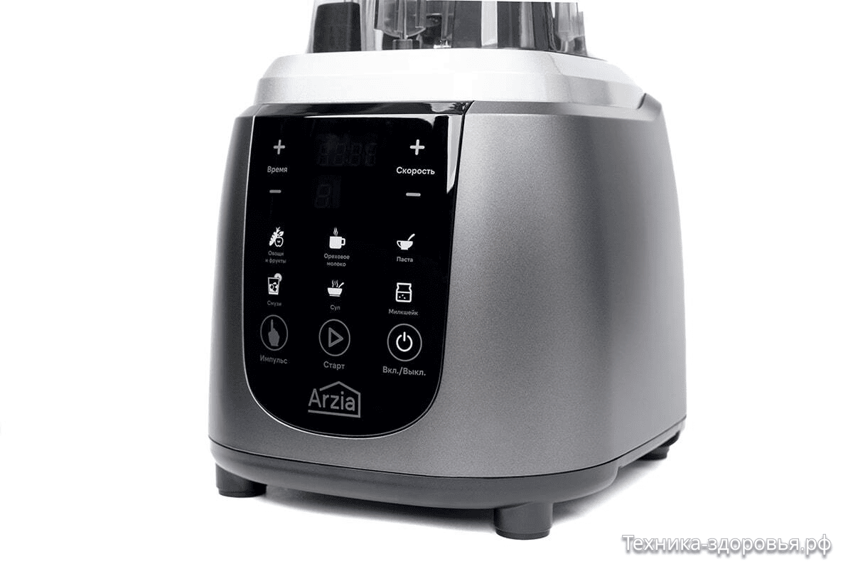 Блендер оснащен современной сенсорной панелью с автопрограммами. Просто выберите нужный режим — и Arzia BS4 самостоятельно подберет оптимальные параметры скорости и времени для приготовления милкшейков, супов, смузи и других блюд.