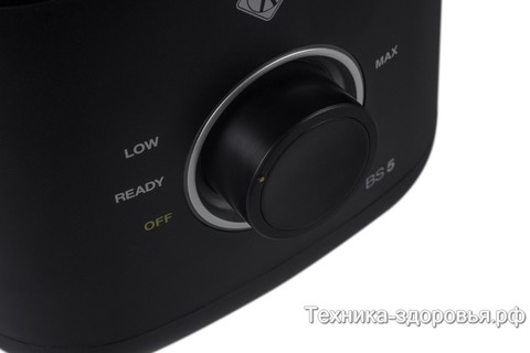 При высокой скорости (плавное увеличение и уменьшение оборотов осуществляется поворотом кнопки вправо и влево) на максимальном режиме вы получаете самую идеальную однородную консистенцию, а при импульсной работе блендер (режим активируется при нажатии на центр большой кнопки) измельчит продукт на крупные или мелкие кусочки.