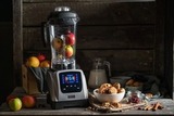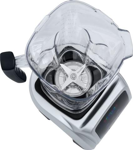 Просто поместите продукты в чашу и выберите нужный режим на дисплее. Блендер имеет конструкцию «крышка в крышке»: по центру есть отверстие, которое закрывается колпачком. Через него можно добавить продукты, пока блендер работает, а сам колпачок выполняет функцию мерного стакана. Блендер оснащен толкателем, который помогает быстро справиться с ореховой пастой и прочими сухими продуктами. С ним легко измельчить лёд, мороженые фрукты, семена и твёрдые овощи. Благодаря ограничителям толкатель безопасен – он никогда не достанет до ножа.