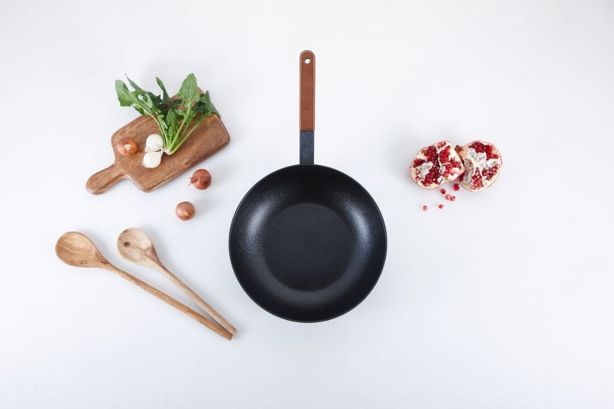 В качестве основания посуды выступает металлическая пластина. Она равномерно распределяет тепло. Поэтому такая сковорода является неотъемлемым атрибутом, как домашней, так и профессиональной кухни.