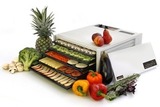 Дегидратор Excalibur Standart 5W - это идеальная домашняя сушилка с 5 лотками (каждый площадью 0,15 м2), для небольшой семьи. Модель мощным вентилятором, который равномерно обдувает все поддоны с продуктом, высушивая их одинаково и качественно. Терморегулятор позволяет выставить температурные режимы от 35°C до 74°C. Вся модель (компоненты, детали, корпус и т.д.) изготовлена в США из очень прочного материала, которые не ломаются, даже если уронить на пол с большой высоты, или поставить его под колеса грузовика.