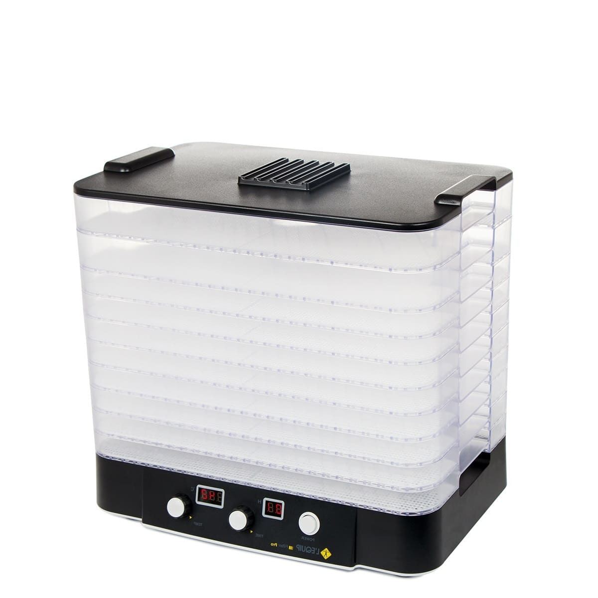 L'equip LD-918BT Max – электросушилка с вертикальным обдувом лотков. Она является расширенной комплектацией модели L'equip LD-918BT. Прибор имеет двенадцать поддонов для сушки продуктов. Кроме того, в набор стандартно включены силиконовые формы для пастилы и контейнеры для йогурта.