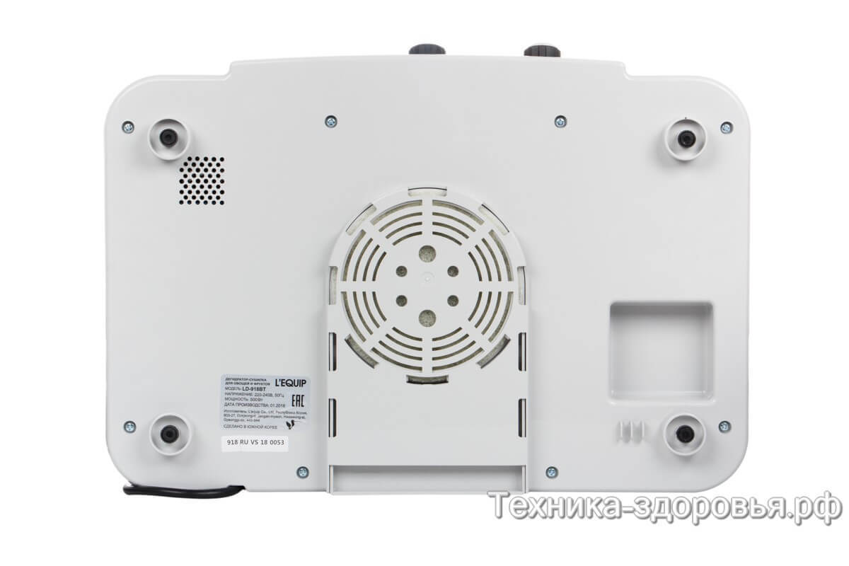Корпус и лотки сушилки L'equip LD-918BT Max изготовлены из безопасного пластика BPA-free. В его составе отсутствует вещество бисфенол.