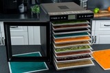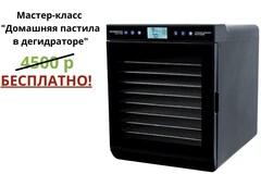 В комплектацию входят 10 стальных лотков, 9 поддонов с бортиками для жидких продуктов: пастила, хлебцы, 9 сетчатых листов.