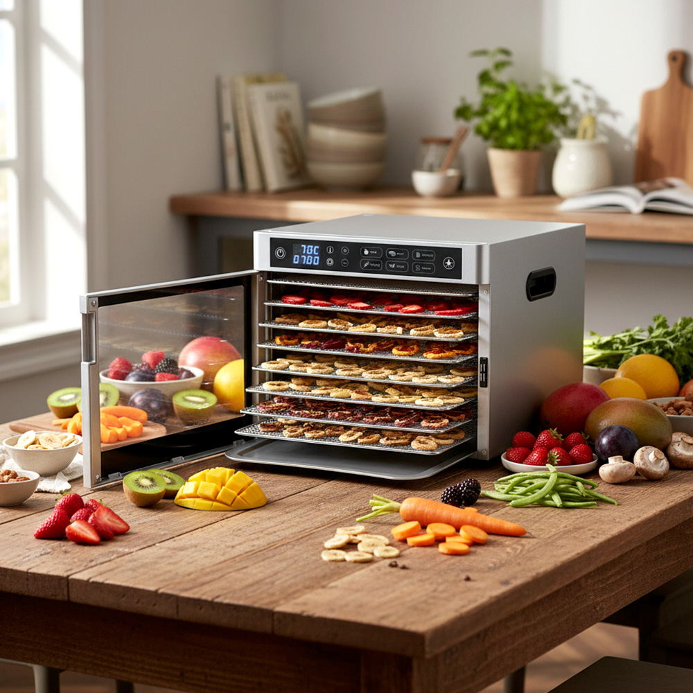 Для сушки овощей, фруктов, ягод, грибов, вяления мяса и рыбы, приготовления пастилы, конфет, хлебцев, йогурта