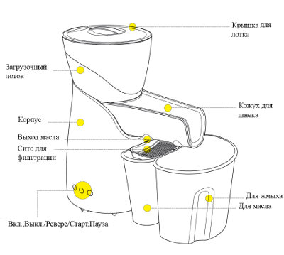 Для получения в домашних условиях масла холодного отжима изо льна, подсолнечника, конопли, арахиса, расторопши, фисташек, миндаля, кунжута, грецкого ореха, тмина, тыквенных семечек, рапса, горчицы.