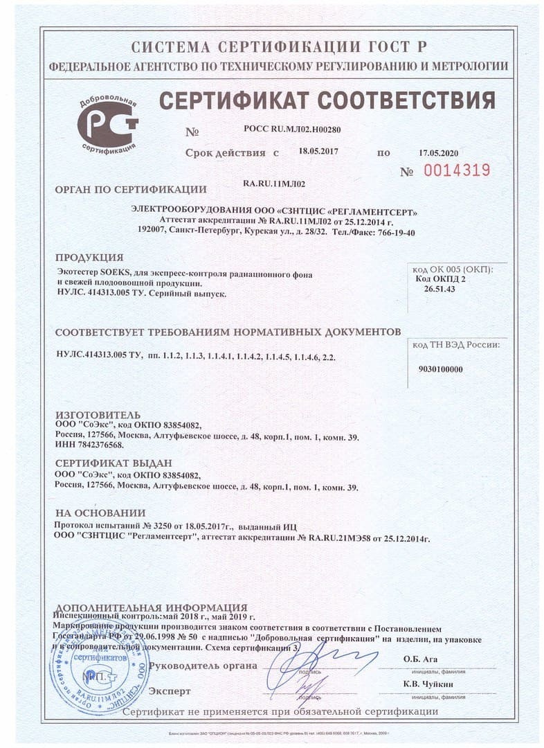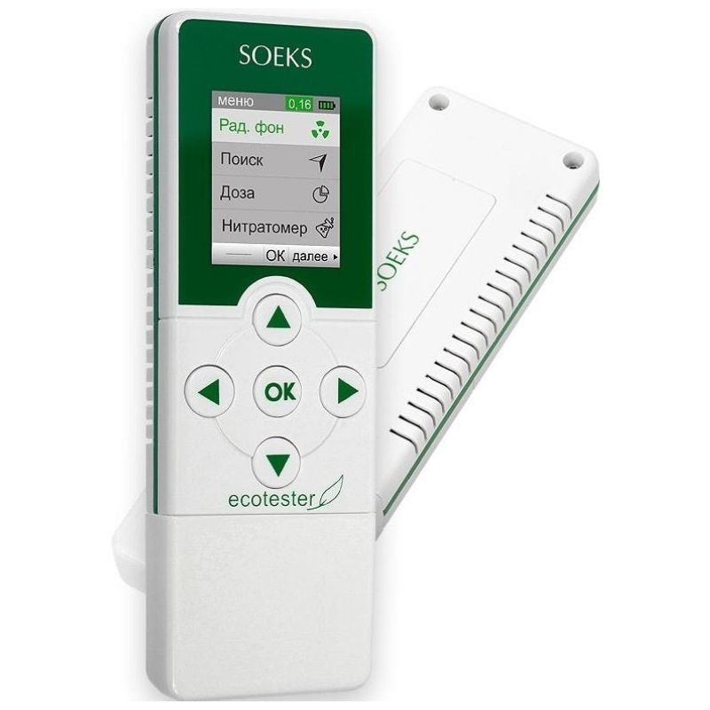 Дозиметр Соэкс Экотестер 3 - представляет собой персональную карманную лабораторию для анализа качества продуктов питания и контроля радиационной обстановки. Прибор сочетает функции дозиметра и нитрат-тестера.