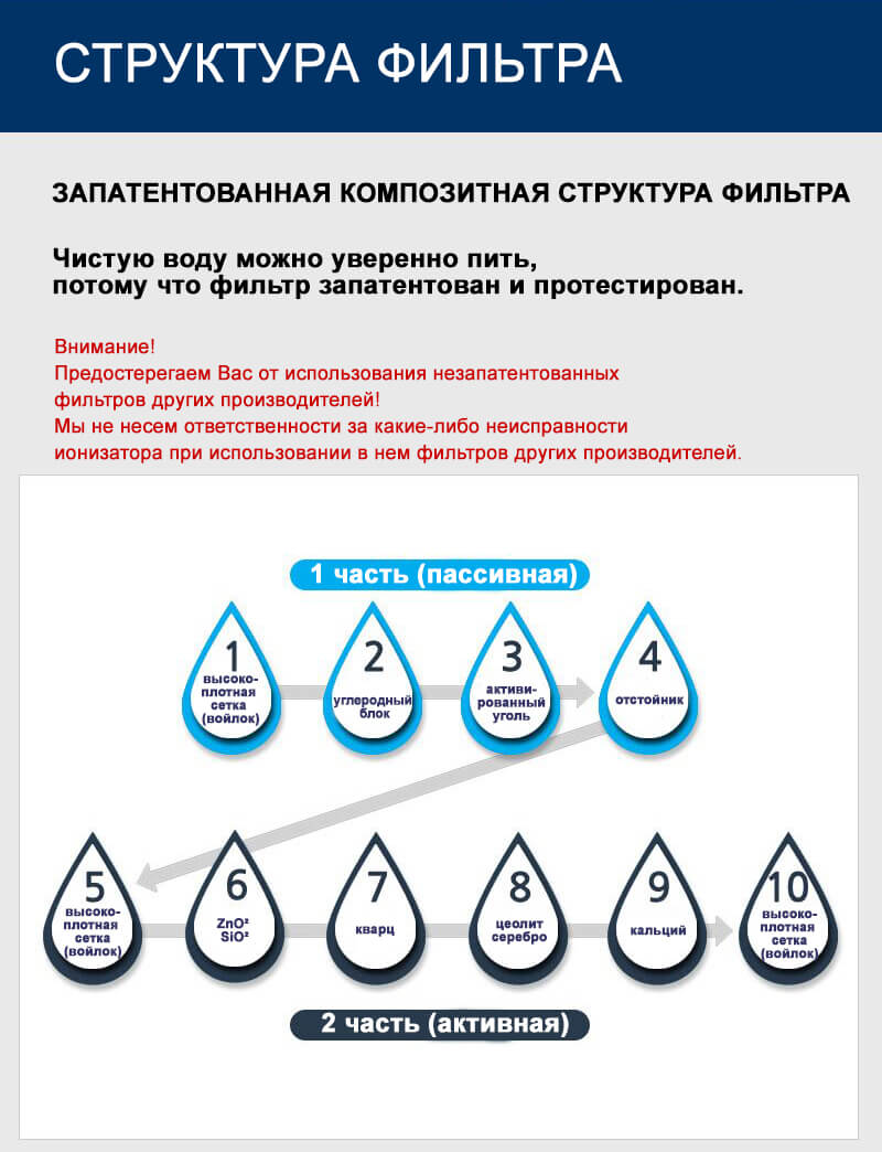Композитный 10-уровневый фильтр очистки воды для ионизатора Ionpia ION-7400/7600:
