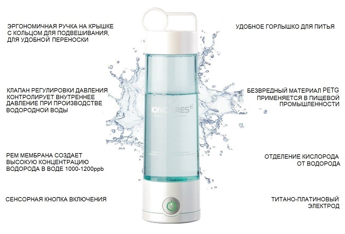 Переносной генератор водородной воды Ioncares H+ представляет собой прибор нового поколения, предназначенный для генерации молекулярного водорода.