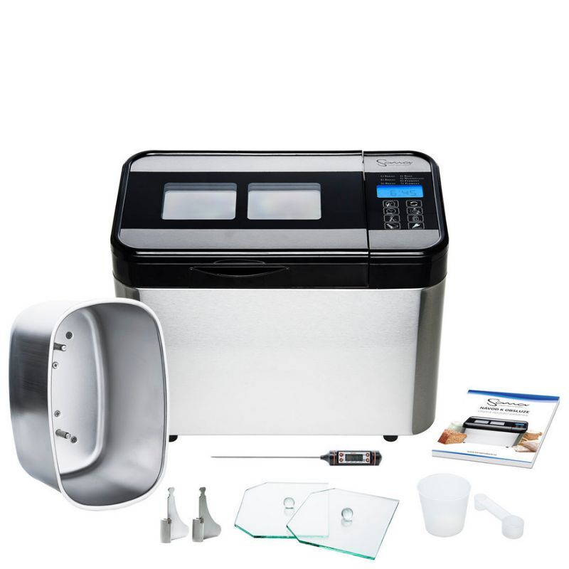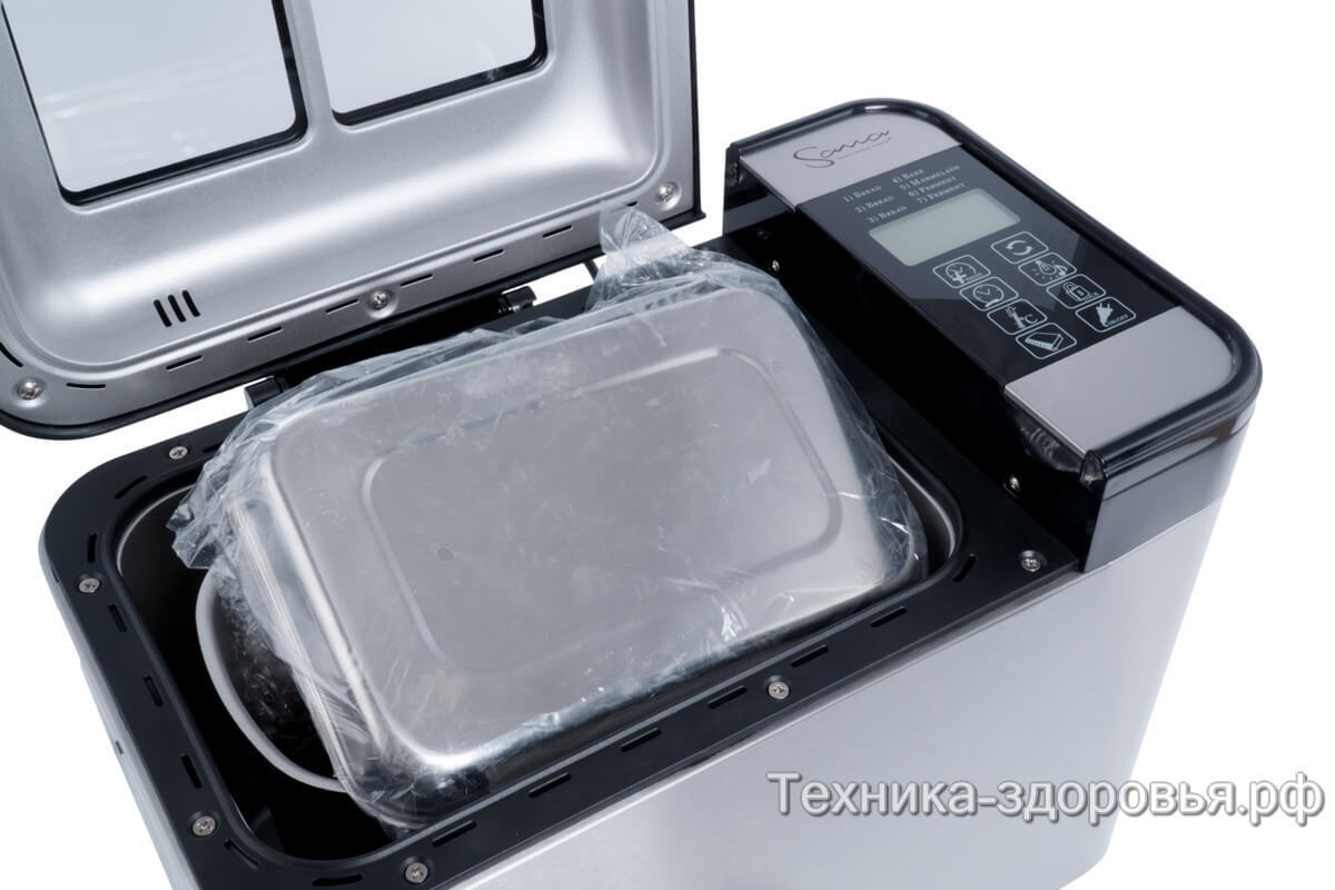 В модели хлебопечки Sana Smart Standart добавлены 2 стеклянные крышки закрывающие контейнер для теста и выпечки, они улучшают консистенцию хлеба и сохраняют энергию в печи. к модели прилагается и цифровой мультитермометр.