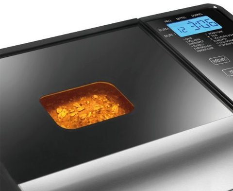 Корпус хлебопечки из нержавеющей стали, на крышке имеется большое смотровое окно для контроля за выпечкой.