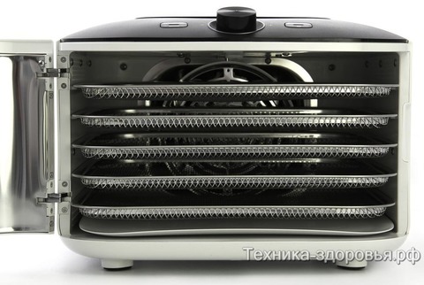 В комплектацию входит 5 поддонов из нержавеющей стали. Это позволяет обрабатывать несколько видов продукции одновременно, не допуская смешивания запахов.