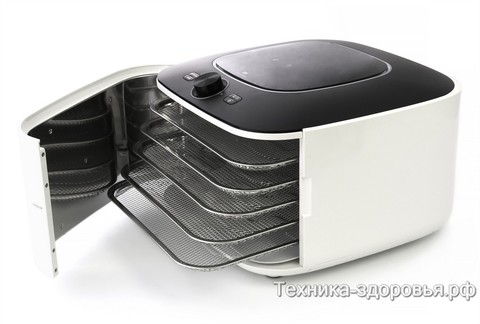 Это «умная» модель, обеспечивающая максимальную простоту обработки любых типов продуктов: овощей, фруктов, зелени, трав, грибов, мяса, рыбы, орехов. Кроме того, аппарат способен приготовить полезные вкусности: пастилу, йогурты, фруктовые роллы. Внедрение инновационных технологий позволило добиться почти полной автоматизации процессов сушки и готовки блюд.