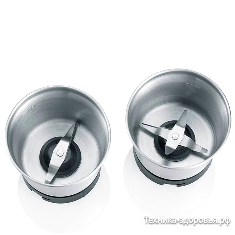 Эта модель удачно сочетает в себе функции кофемолки (например, для френч-пресса или фильтр-кофе) и измельчителя специй, становясь незаменимым устройством для приготовления любых рецептов. Благодаря двум сменным ножам она легко справляется с самыми разными ингредиентами.