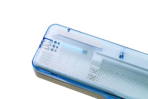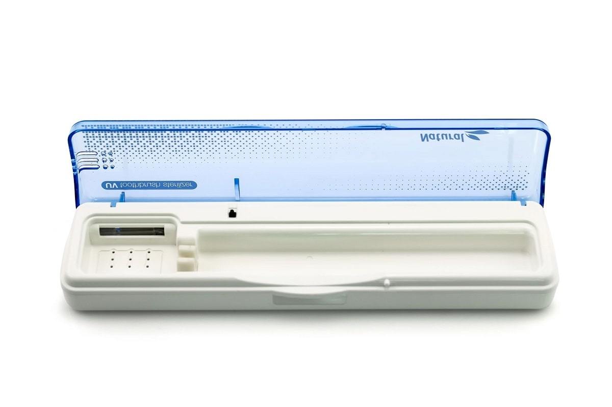 Современный безопасный и простой в использовании портативный ультрафиолетовый стерилизатор предназначен для антибактериальной обработки зубных щеток.