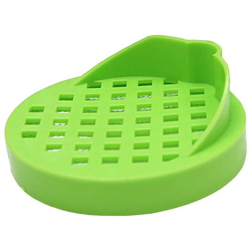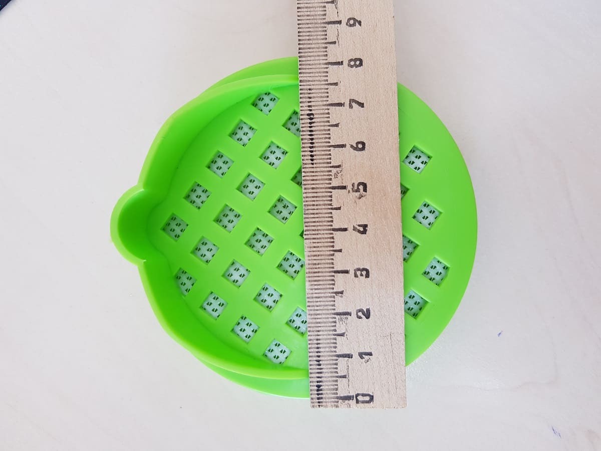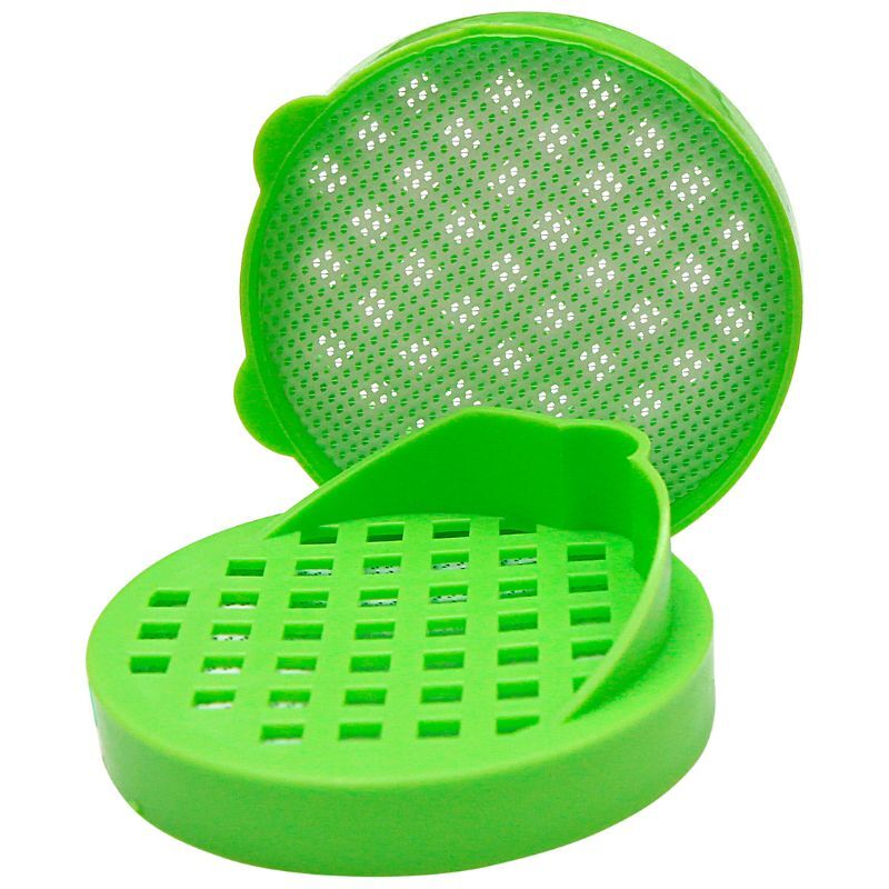 Для промывания семян в крышке предусмотрены специальные отверстия, также они дают доступ воздуху. С внутренней стороны расположена сеточка с мелкими отверстиями, благодаря которой при промывании даже самые маленькие семена останутся внутри. Выступ на крышке позволит поставить проращиватель на горизонтальную поверхность под углом, чтобы через образовавшийся зазор поступал воздух и создавал тепличный эффект.
