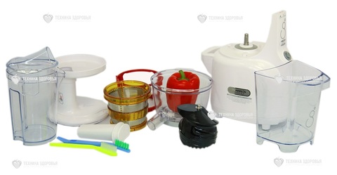 Корпус с двигателем - 1 шт.; Чаша соковыжималки - 1 шт.; Шнек - 1 шт.