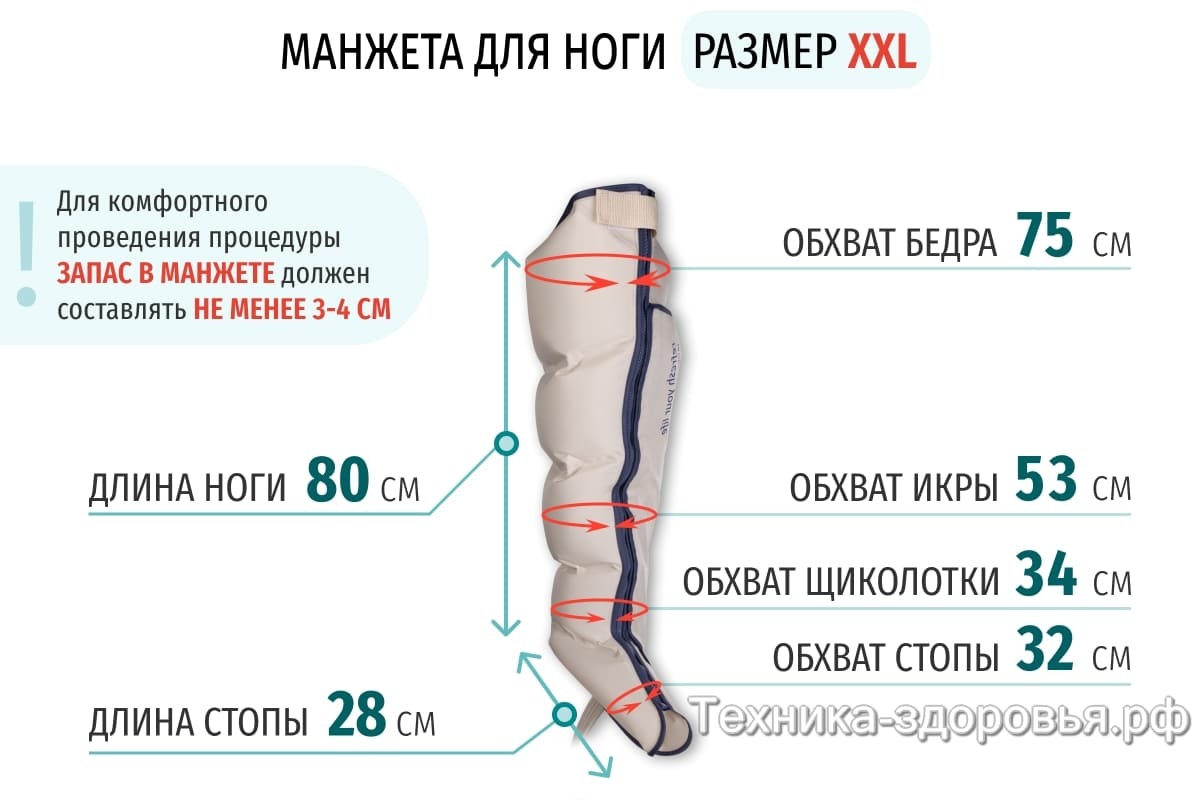 Манжеты для ног оснащены пятью независимыми камерами, которые обеспечивают плавную проработку каждой зоны ноги.