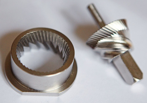 Стальные жернова. Производительность: 100-200 г/мин. Для сухого зерна, маслосодержащих семян и специй. Пластмасса.