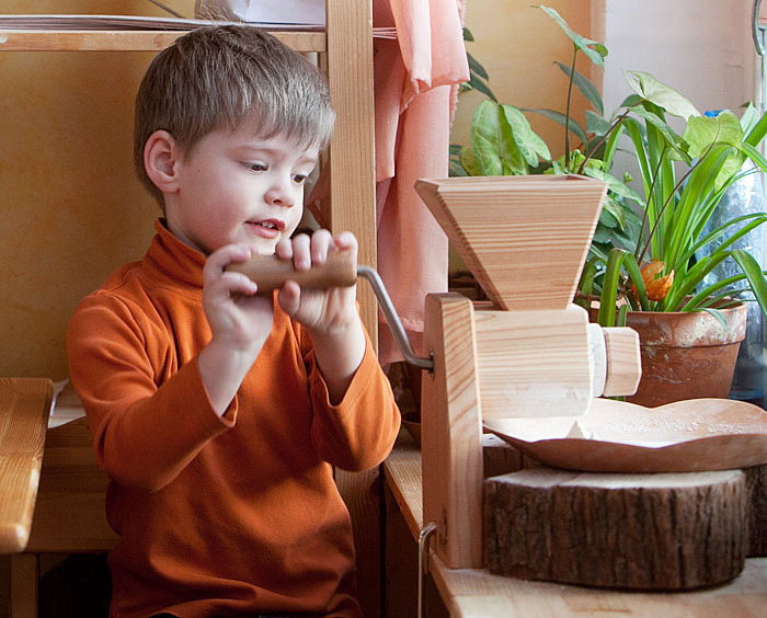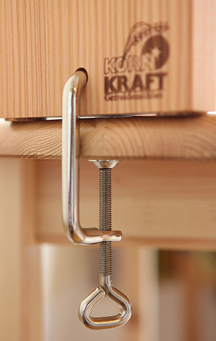 Основное преимущество ручной мельницы Kornkraft Farina - независимость от электричества. Кроме того, работа этой мельницы может заинтересовать детей - прибор сконструирован таким образом, что видны жернова и зерно измельчается прямо на ваших глазах.