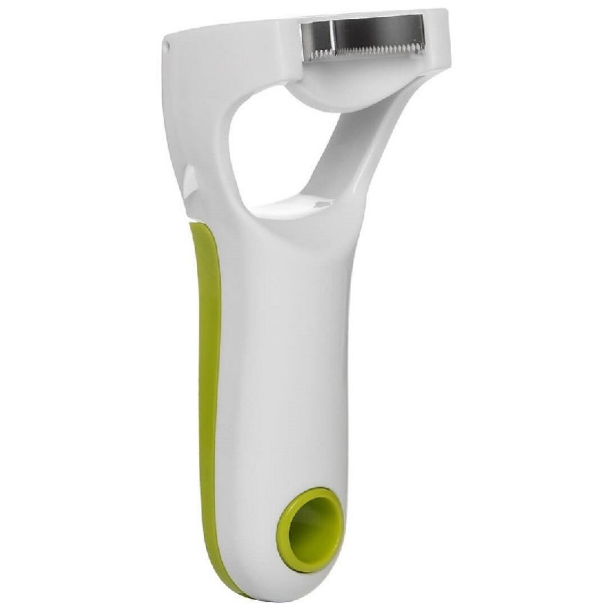 Овощечистка оснащена приспособлением для вырезания из продуктов «глазков» и поврежденных участков, а также снятия зерен с кукурузного початка. Эргономичное многофункциональное устройство удобно держать в руке. После использования овощечистку можно мыть под проточной водой или в посудомоечной машине.