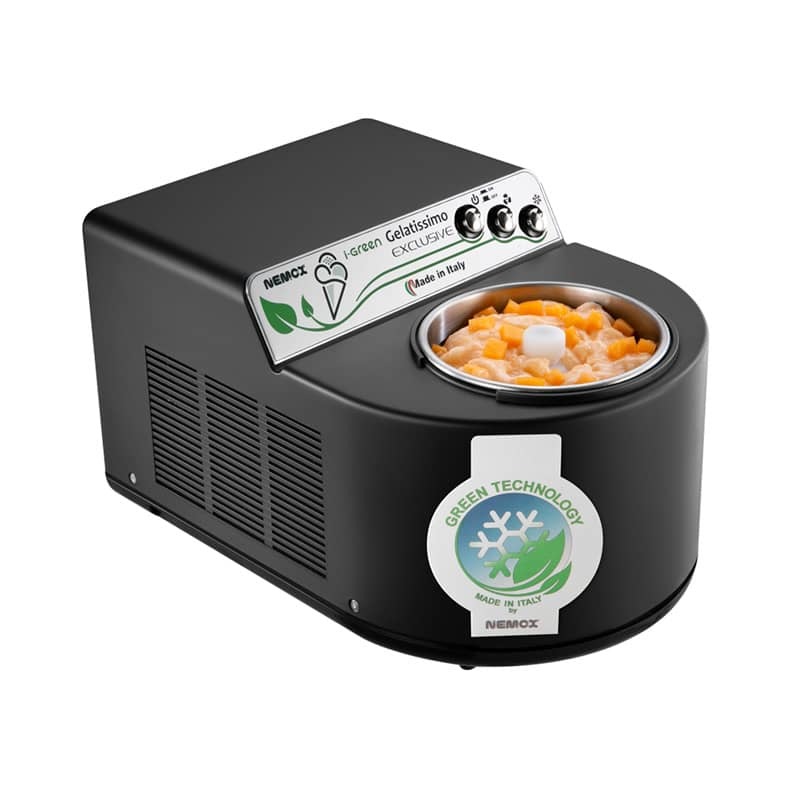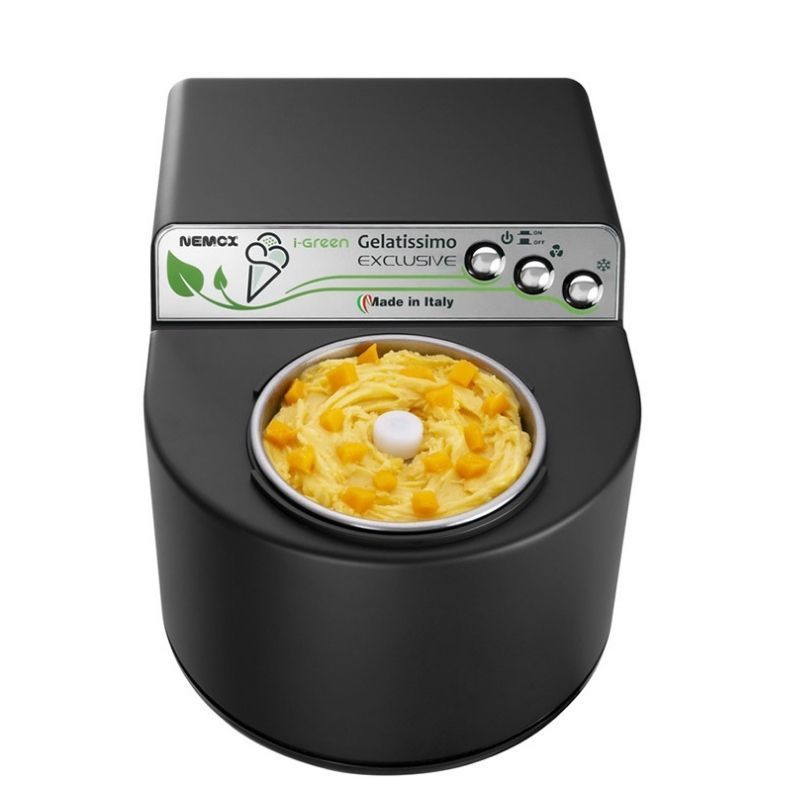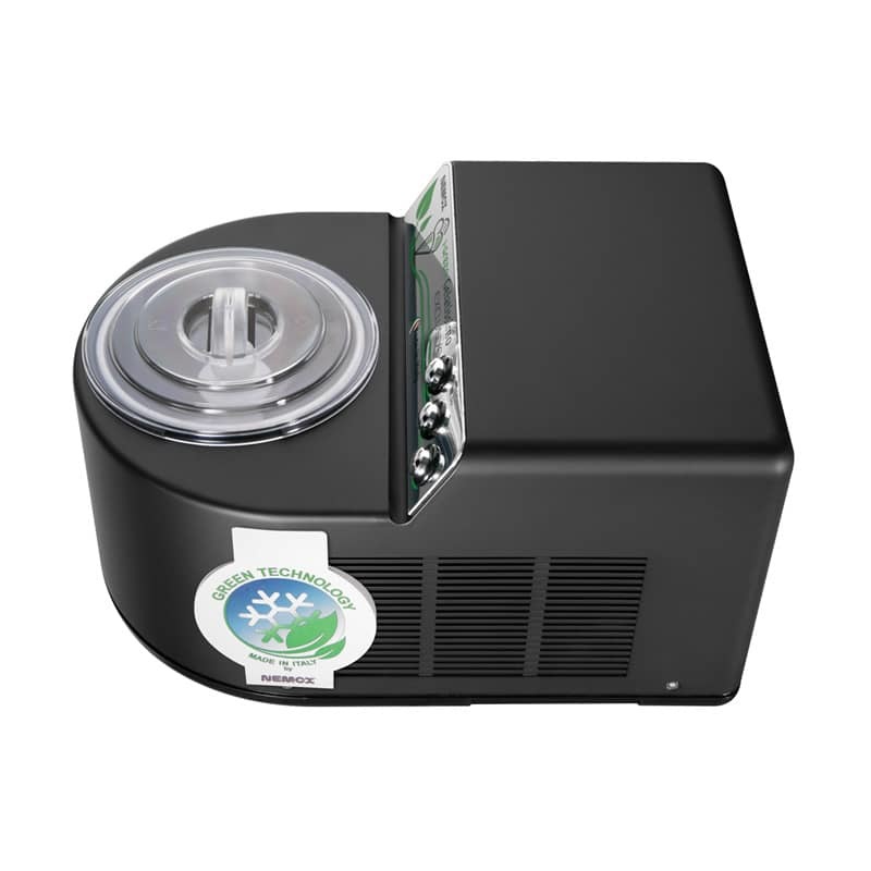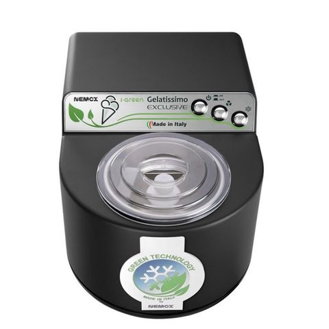 Автоматическая мороженица Nemox I-Green Gelatissimo Exclusive Black - потрясающее сочетание дизайна и высокой функциональности. Мороженица со стильным черным корпусом позволит вам всего лишь за 25-35 минут приготовить до 1 литра мороженого, граниты или сорбета.