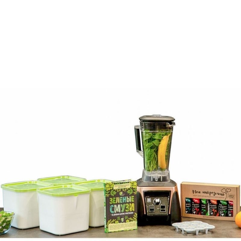 Набор «Детокс» блендер King Mix KM-2000 золотой песок + проращиватель Здоровья Клад Х4 + набор семян «Моя микрозелень»