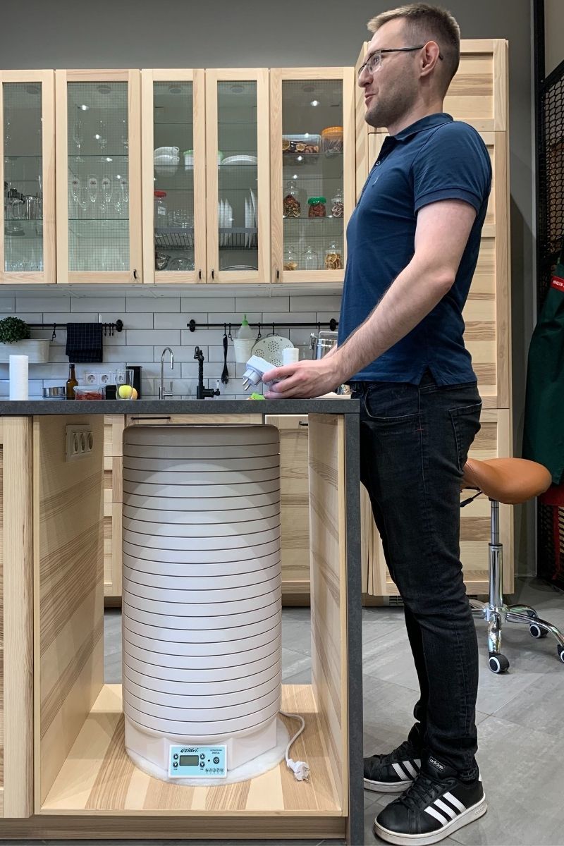 При покупке комплекта, важно помнить, что вы покупаете комплект, с помощью которого вы экономите не только свое время, но и электроэнергию. Экономия вашего времени заключается в том, что вы единовременно загружаете в сушильную камеру максимально возможное количество продуктов и не требуется делать это повторно из-за нехватки места на поддонах. А вот относительно расхода на электроэнергию на сушку 1 цикла яблок, мы подсчитали, что он составит не более 10 руб.! Так как среднее потребление дегидратора Ezidri Ultra FD1000 Digital составляет 350 Вт/час!
