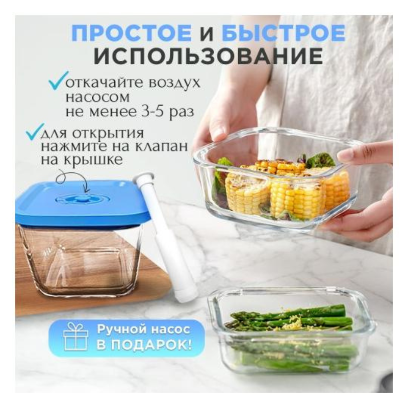 Кроме этого в подарок к контейнерам идет вакуумный насос.