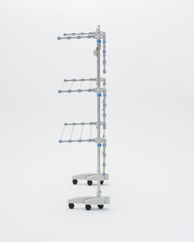 Напольная модель мобильна, компактна, имеет конструкцию трансформера. При необходимости вы всегда с легкостью сможете сложить или разложить крылья сушилки. Позволяет повесить одновременно 2 стандартные загрузки стиральной машины. Также есть боковые крылья с кольцами, на которые можно повесить вешалку с рубашкой или другой одеждой.