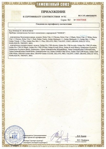 Модель Gelatissimo Classic с емкостью контейнера 1,7 литров. Подходит для приготовления мороженого, сорбета или граниты всего за 20-40 минут.