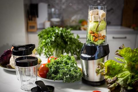Персональный блендер с мощным мотором до 1000 Вт и тремя чашами в комплекте для качественных смузи в небольшом объеме
