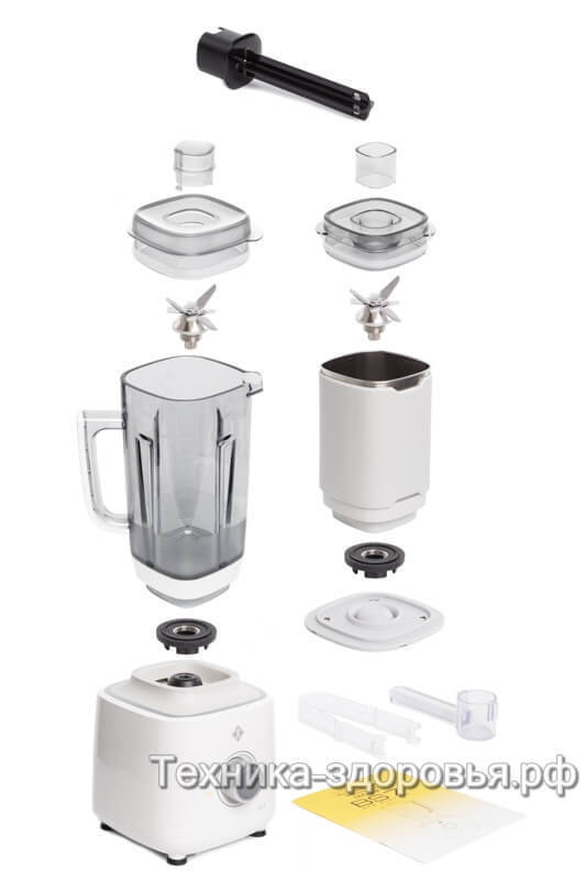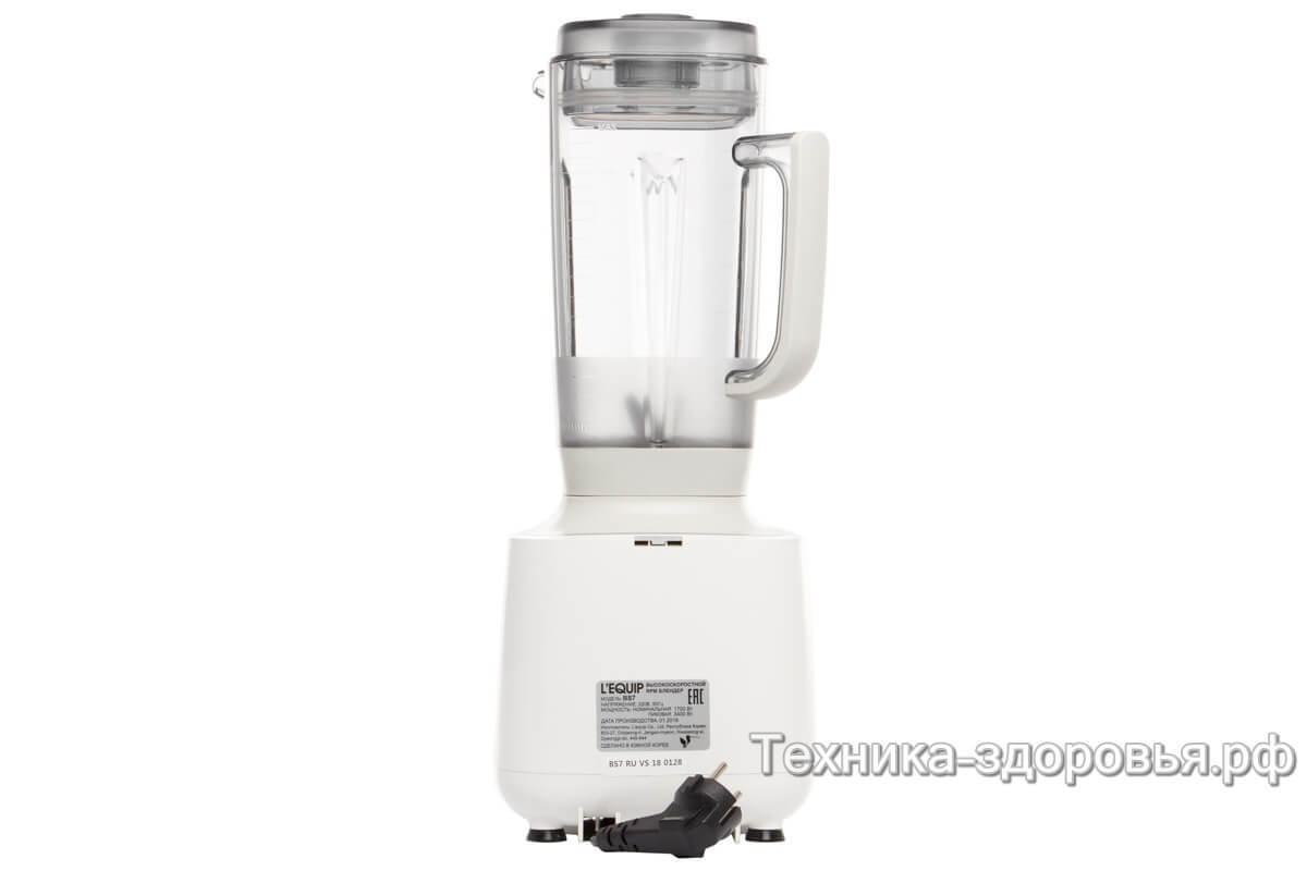 Надежность. Разработчики Lequip улучшили конструкцию блендера BS7 Quattro, сделав ее более прочной. Стакан выполнен из термостойкого пластика (тритана), отличающегося износоустойчивостью. Все прорезиненные компоненты плотно прилегают друг к другу. Гарантия производителя на прибор составляет 7 лет.