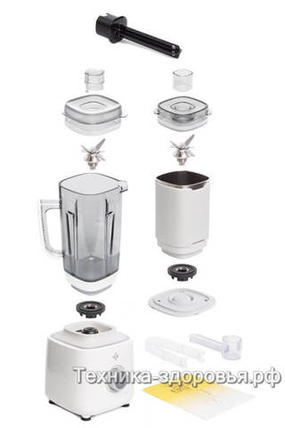 улучшенный уплотнитель на крышке чаши;Разработчики позаботились о более надежной и простой эксплуатации блендера, поэтому оснастили его оригинальной системой крепления чаши – установить ее на двигатель теперь можно в одно движение, а система безопасности не даст мотору включиться в случае отсутствия или неправильной установки чаши.