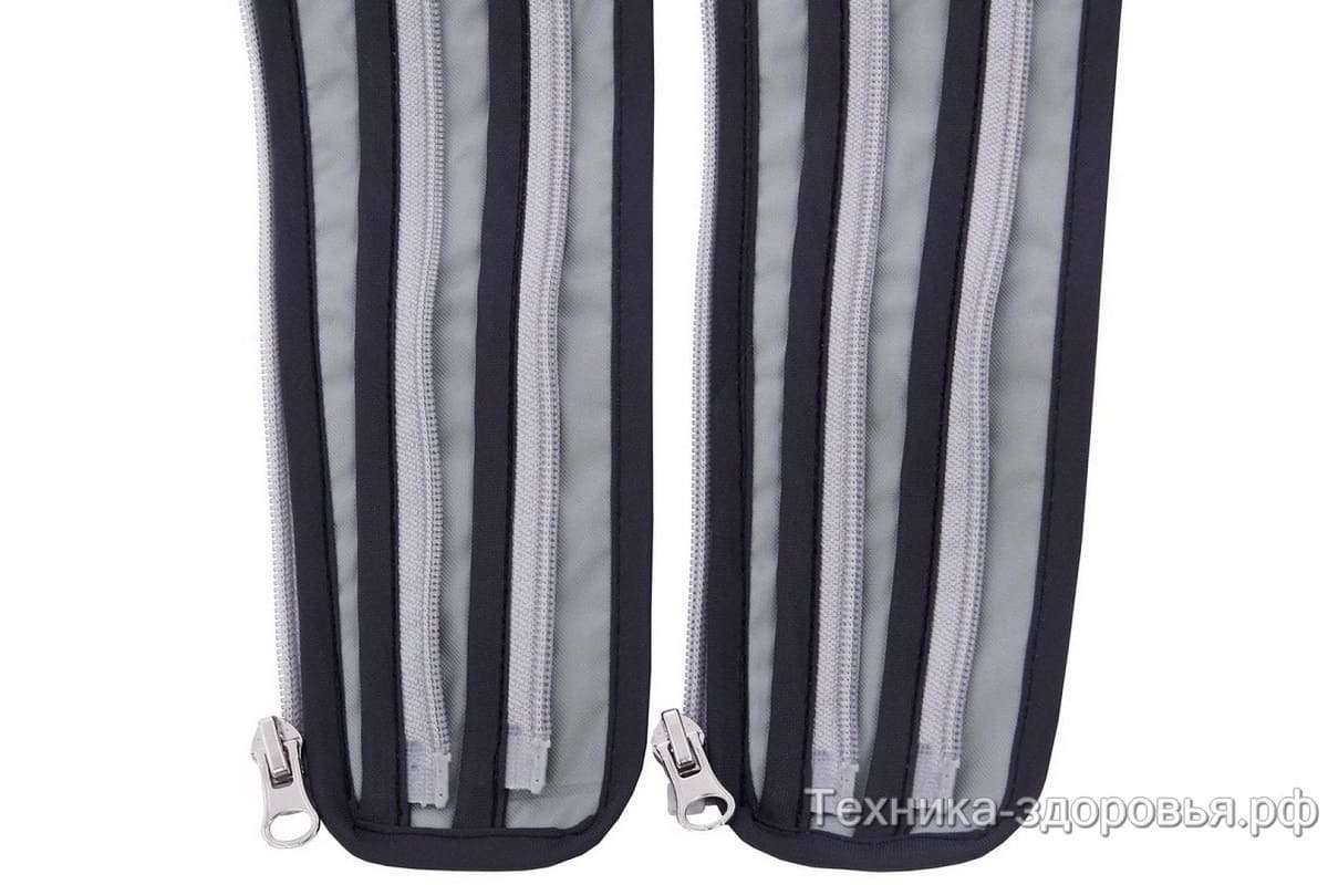 Благодаря надежности водонепроницаемого материала, из которого изготовлены данные расширители, они выдерживают высокое давление. Присоединяются расширители к манжетам для ног при помощи молний. Каждый расширитель имеет 2 уровня молний.