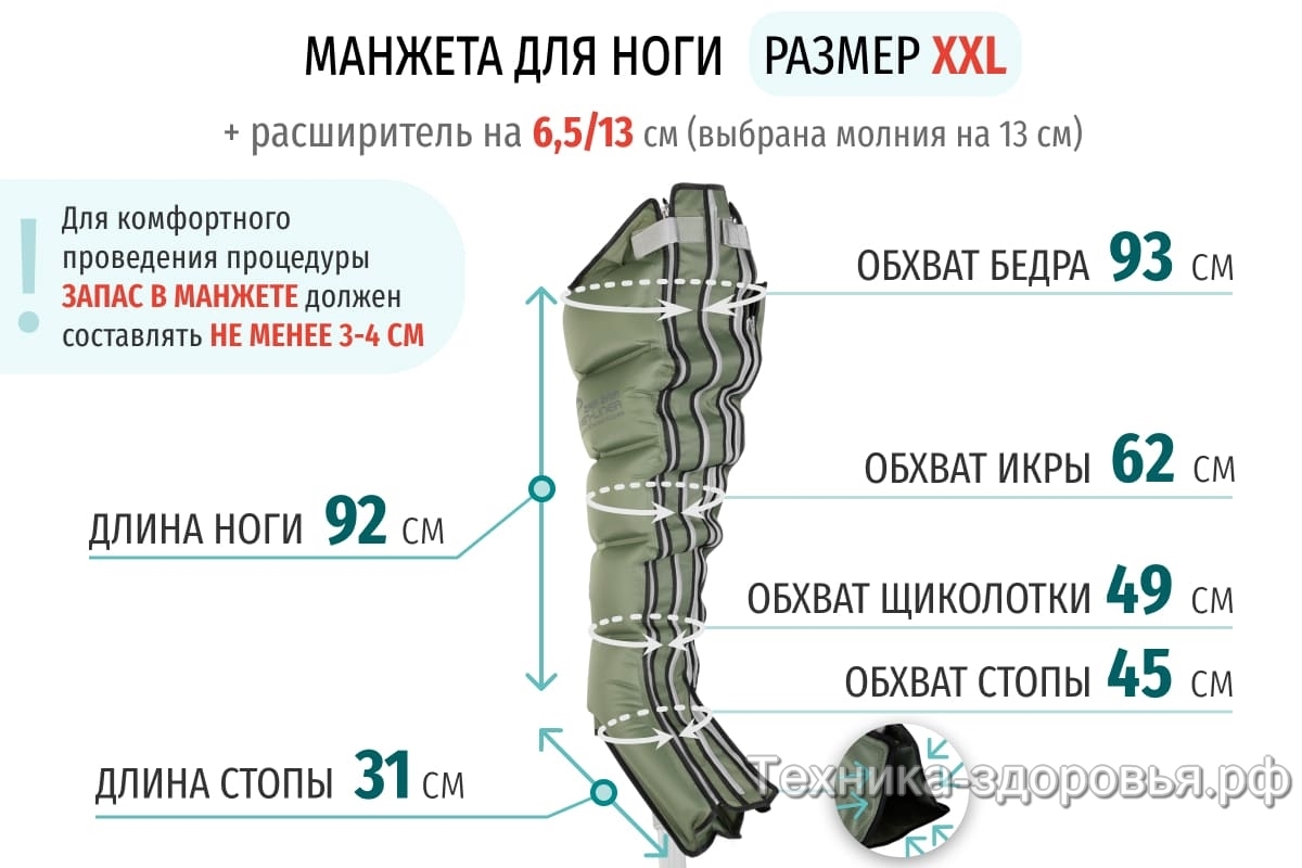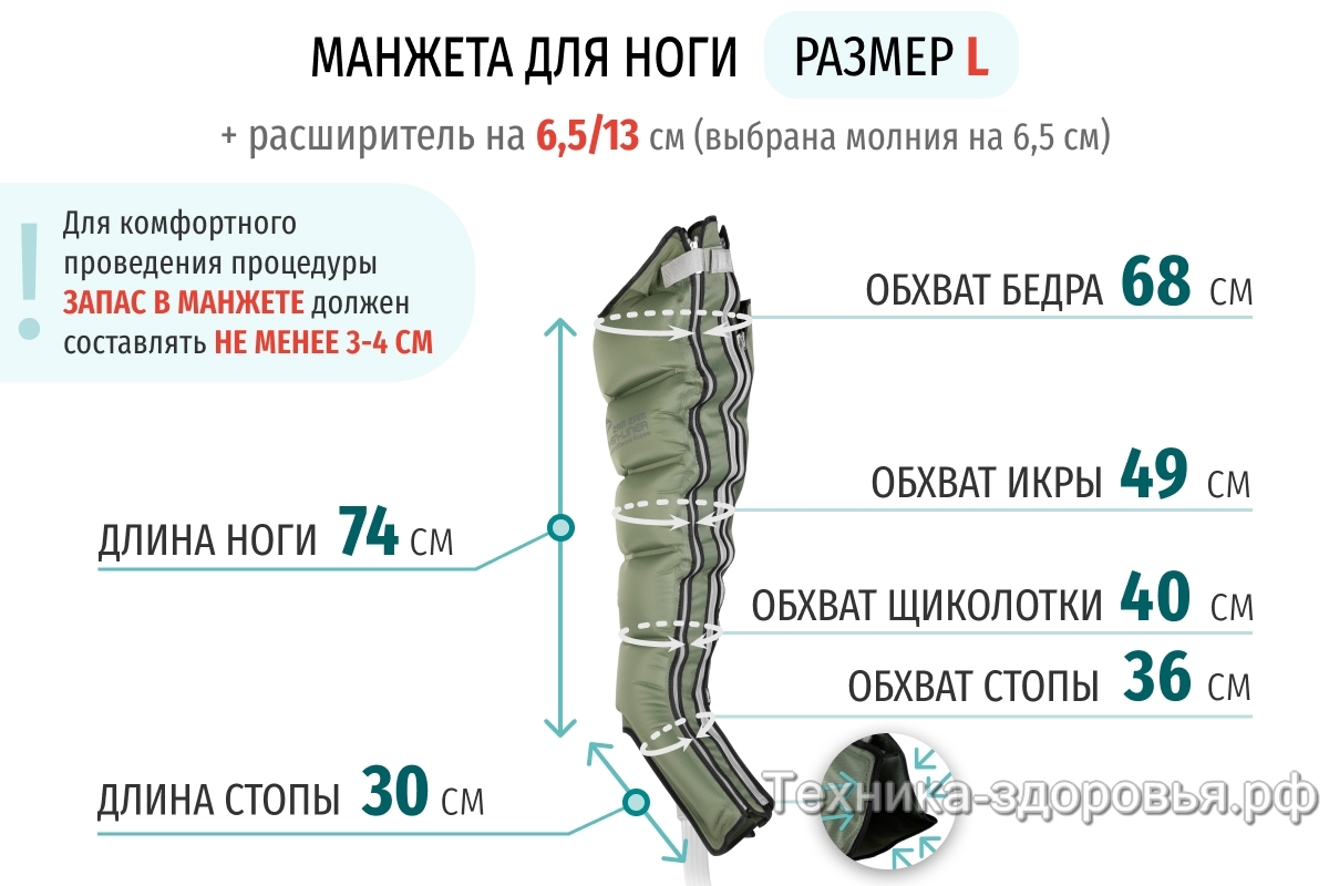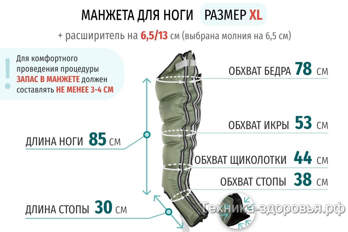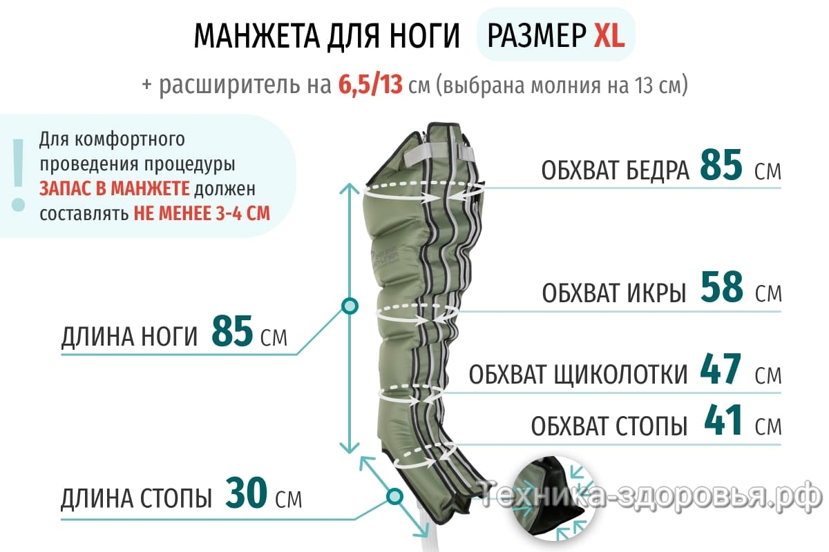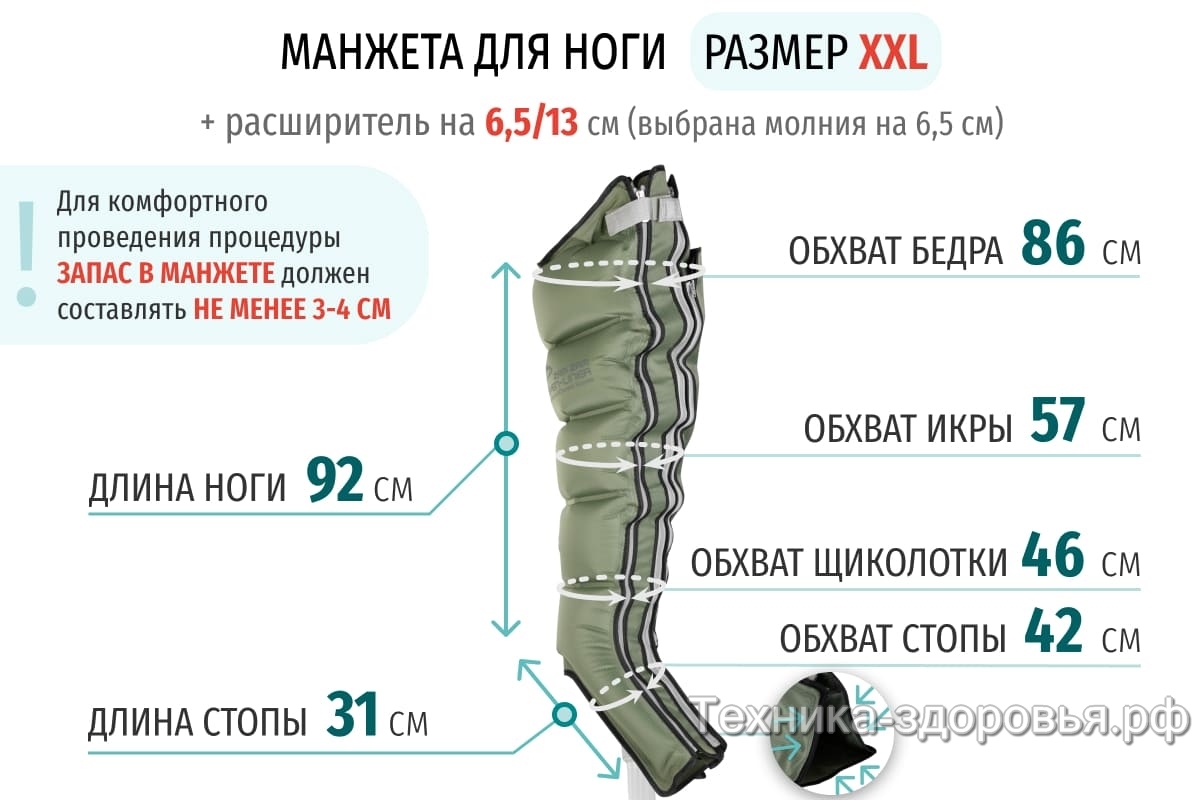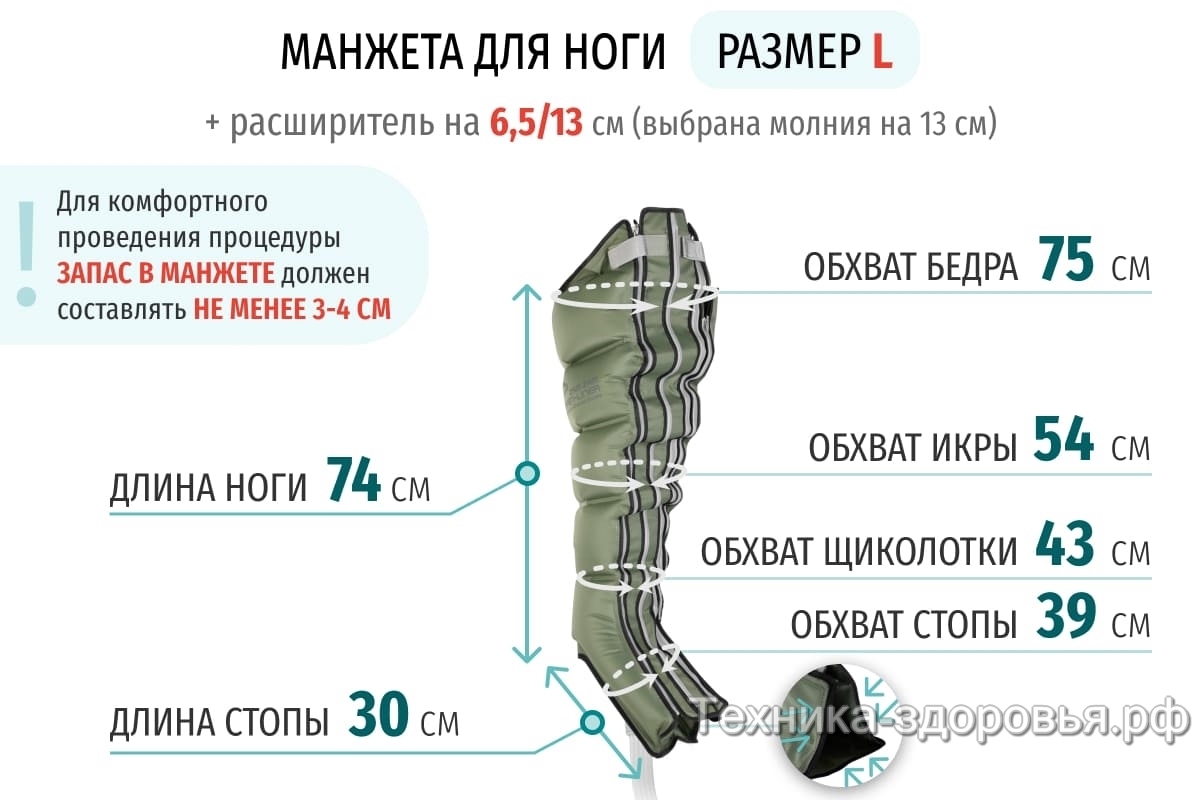 Для увеличения размера манжеты для ног