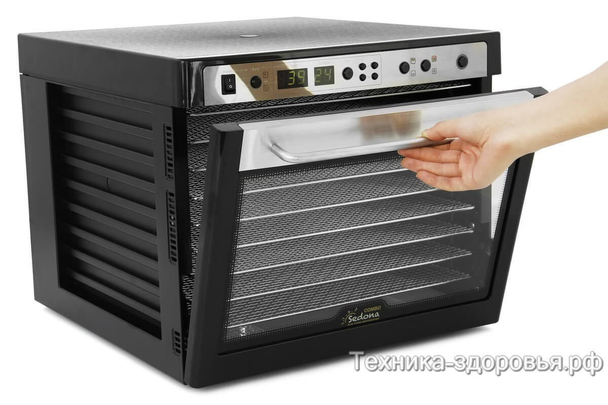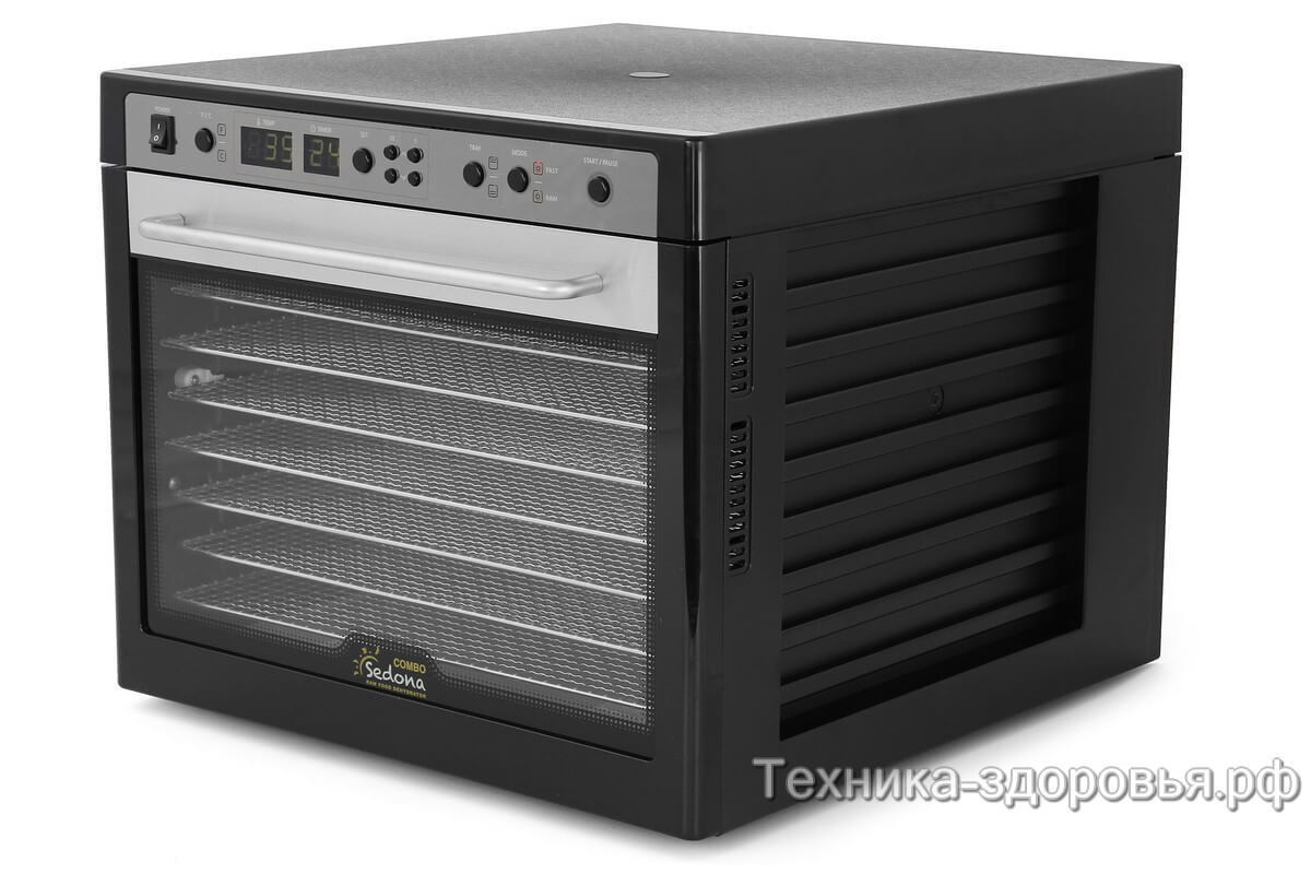 Sedona Combo SD-S9150 – мощный современный дегидратор известного американского бренда, удачно объединяющий высокую производительность и экономичность. Он позволяет тщательно и бережно вывести влагу из исходного продукта путем горизонтального обдува при низкой температуре. При этом сохраняются 90% всех витаминов, энзимов, микроэлементов.
