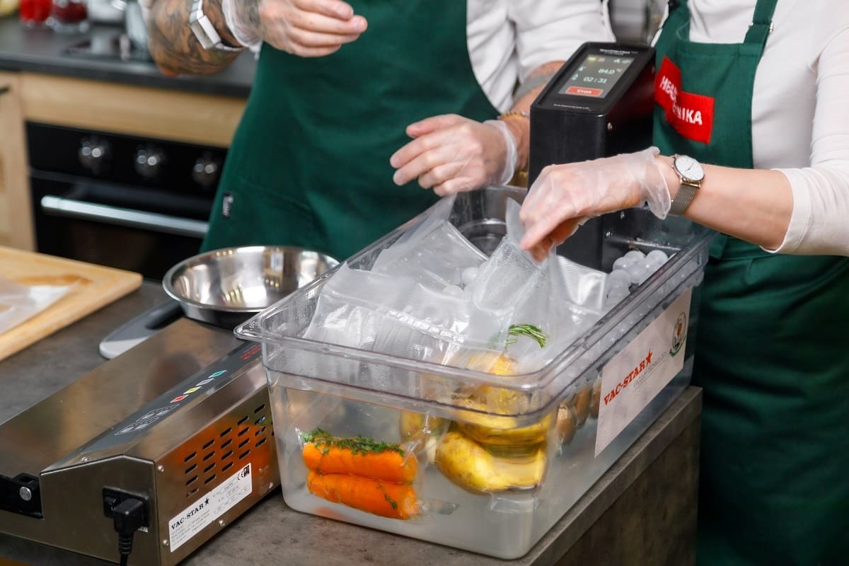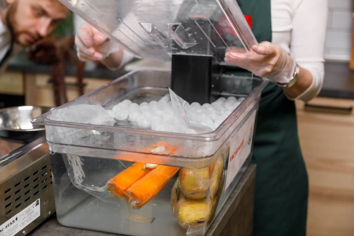 Для снижения потерь воды и тепла по время приготовления продуктов по технологии су-вид