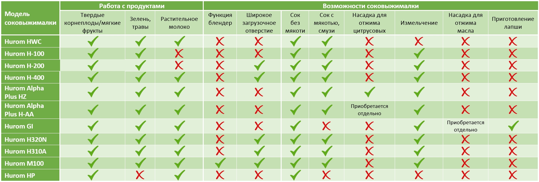 | Продукты | Ореховое молоко , Твердые овощи, фрукты, сельдерей , Ягоды и мягкие овощи, фрукты |