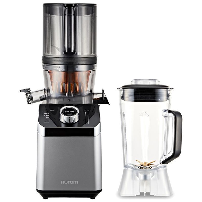 Hurom M100-SBEA05 – прибор, сочетающий в себе высокоскоростной блендер и соковыжималку медленного отжима. С помощью этого устройства вы сможете готовить сок, смузи, суп, паштет, колоть лед, орехи, делать муку и другие блюда.